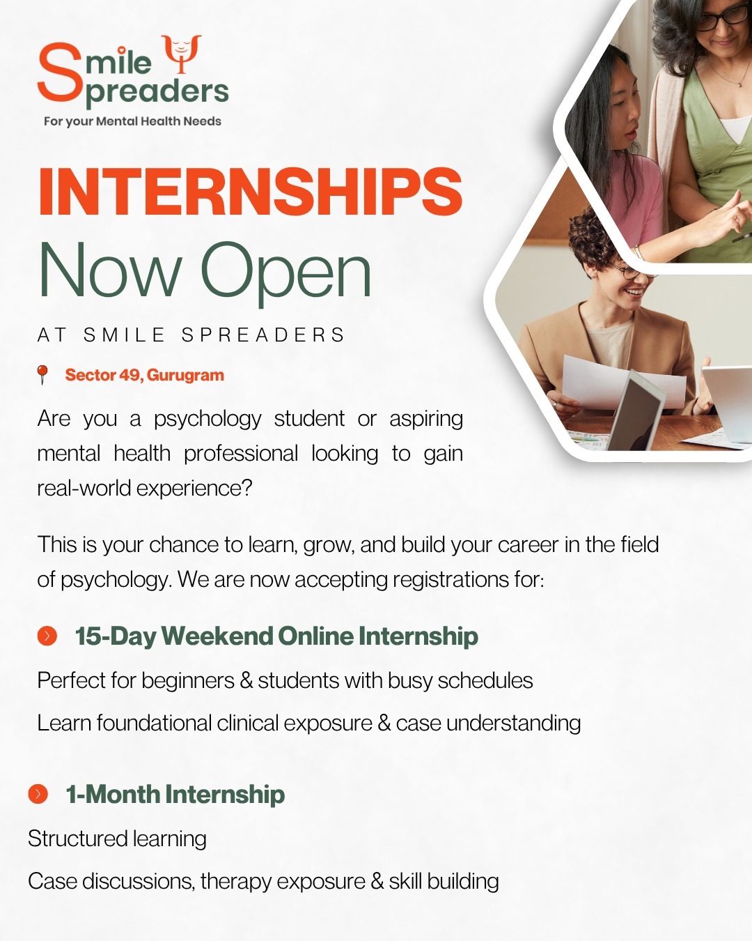 We are more than grateful in assisting students in the field of Psychology in providing practical skills-based trainings, internships, workshops, case discussions for their own upgradation in order to contribute meaningfully in the field of mental health.